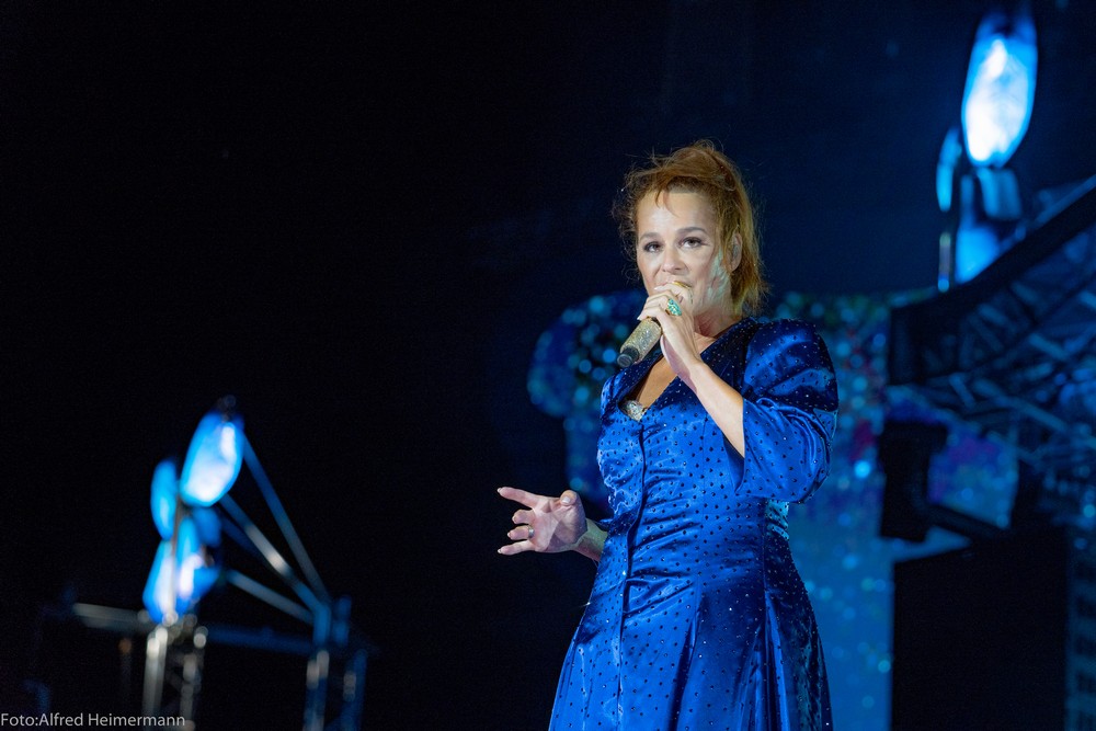 13._Heimspiel_Andrea_Berg__Freitag(1) Mechatronikarena Aspach, 20.7.2018 15000 Besucher waren zum 1. Konzert des 13. Andrea Berg Heimspiel in die Arena in der Fautenau gekommen. Durch die Hitze waren im Vorprogramm nicht soviele Fans wie sonst an der Bühne. Rebel Tell und Sunrise waren Künstler, die im Vorprogramm für die meiste Stimmung sorgten, aber es traten noch andere Künstler auf, u.a. eine Sängerin aus Kleinaspach. Gegen 21 Uhr dann der große Moment, als der Schmetterlingvorhang fiel und Andrea ihr 3 stündiges Konzert begann, sie strahlte mit einem lächeln den ganzen Abend, man merkte, sie freute sich, so wie auch ihre Fans. Mit einem großen Feuerwerk endete ein schöner Sommerabend. |