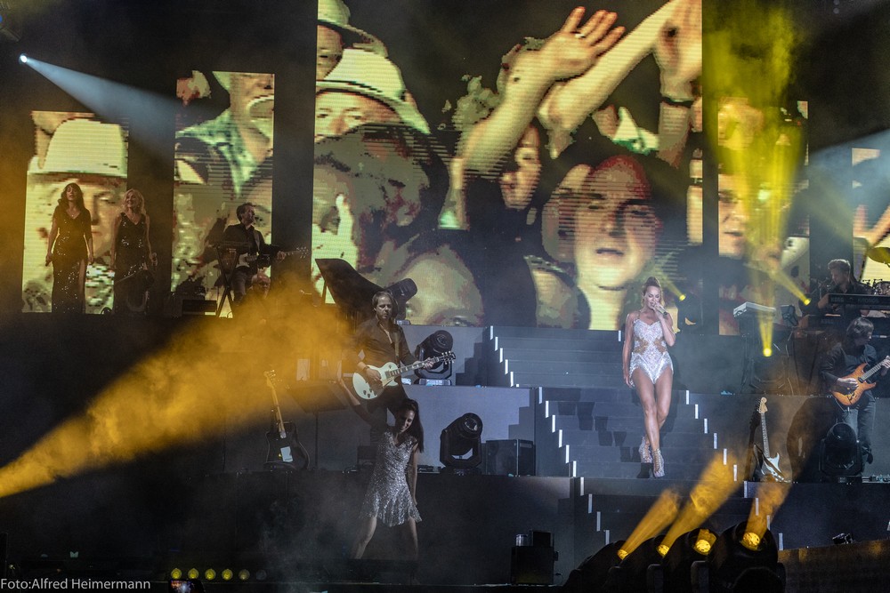 13._Heimspiel_Andrea_Berg__Freitag(1) Mechatronikarena Aspach, 20.7.2018 15000 Besucher waren zum 1. Konzert des 13. Andrea Berg Heimspiel in die Arena in der Fautenau gekommen. Durch die Hitze waren im Vorprogramm nicht soviele Fans wie sonst an der Bühne. Rebel Tell und Sunrise waren Künstler, die im Vorprogramm für die meiste Stimmung sorgten, aber es traten noch andere Künstler auf, u.a. eine Sängerin aus Kleinaspach. Gegen 21 Uhr dann der große Moment, als der Schmetterlingvorhang fiel und Andrea ihr 3 stündiges Konzert begann, sie strahlte mit einem lächeln den ganzen Abend, man merkte, sie freute sich, so wie auch ihre Fans. Mit einem großen Feuerwerk endete ein schöner Sommerabend. |