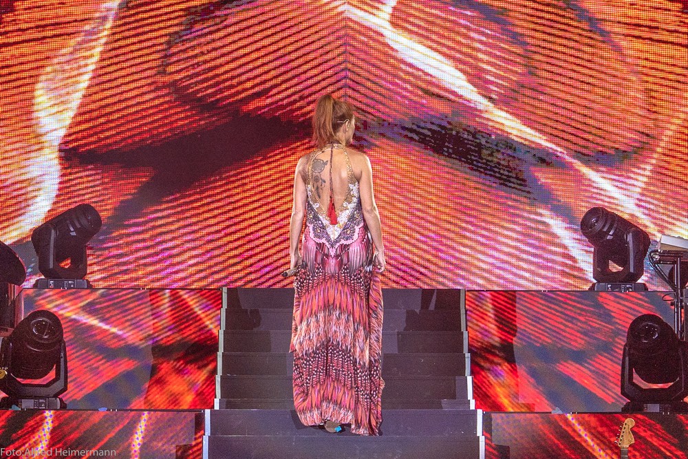 13._Heimspiel_Andrea_Berg__Freitag(1) Mechatronikarena Aspach, 20.7.2018 15000 Besucher waren zum 1. Konzert des 13. Andrea Berg Heimspiel in die Arena in der Fautenau gekommen. Durch die Hitze waren im Vorprogramm nicht soviele Fans wie sonst an der Bühne. Rebel Tell und Sunrise waren Künstler, die im Vorprogramm für die meiste Stimmung sorgten, aber es traten noch andere Künstler auf, u.a. eine Sängerin aus Kleinaspach. Gegen 21 Uhr dann der große Moment, als der Schmetterlingvorhang fiel und Andrea ihr 3 stündiges Konzert begann, sie strahlte mit einem lächeln den ganzen Abend, man merkte, sie freute sich, so wie auch ihre Fans. Mit einem großen Feuerwerk endete ein schöner Sommerabend. |