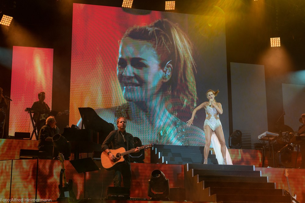 13._Heimspiel_Andrea_Berg__Freitag(1) Mechatronikarena Aspach, 20.7.2018 15000 Besucher waren zum 1. Konzert des 13. Andrea Berg Heimspiel in die Arena in der Fautenau gekommen. Durch die Hitze waren im Vorprogramm nicht soviele Fans wie sonst an der Bühne. Rebel Tell und Sunrise waren Künstler, die im Vorprogramm für die meiste Stimmung sorgten, aber es traten noch andere Künstler auf, u.a. eine Sängerin aus Kleinaspach. Gegen 21 Uhr dann der große Moment, als der Schmetterlingvorhang fiel und Andrea ihr 3 stündiges Konzert begann, sie strahlte mit einem lächeln den ganzen Abend, man merkte, sie freute sich, so wie auch ihre Fans. Mit einem großen Feuerwerk endete ein schöner Sommerabend. |