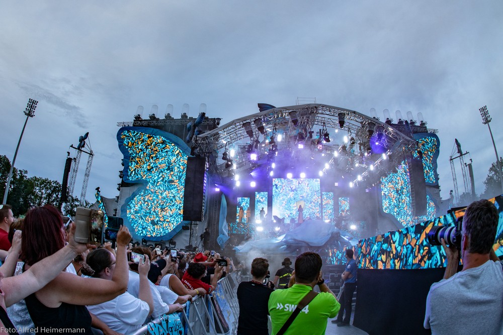13._Heimspiel_Andrea_Berg__Freitag(1) Mechatronikarena Aspach, 20.7.2018 15000 Besucher waren zum 1. Konzert des 13. Andrea Berg Heimspiel in die Arena in der Fautenau gekommen. Durch die Hitze waren im Vorprogramm nicht soviele Fans wie sonst an der Bühne. Rebel Tell und Sunrise waren Künstler, die im Vorprogramm für die meiste Stimmung sorgten, aber es traten noch andere Künstler auf, u.a. eine Sängerin aus Kleinaspach. Gegen 21 Uhr dann der große Moment, als der Schmetterlingvorhang fiel und Andrea ihr 3 stündiges Konzert begann, sie strahlte mit einem lächeln den ganzen Abend, man merkte, sie freute sich, so wie auch ihre Fans. Mit einem großen Feuerwerk endete ein schöner Sommerabend. |