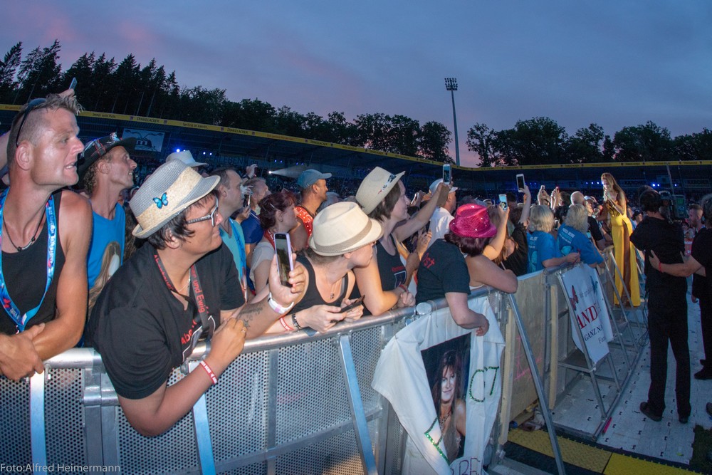 13._Heimspiel_Andrea_Berg__Freitag(1) Mechatronikarena Aspach, 20.7.2018 15000 Besucher waren zum 1. Konzert des 13. Andrea Berg Heimspiel in die Arena in der Fautenau gekommen. Durch die Hitze waren im Vorprogramm nicht soviele Fans wie sonst an der Bühne. Rebel Tell und Sunrise waren Künstler, die im Vorprogramm für die meiste Stimmung sorgten, aber es traten noch andere Künstler auf, u.a. eine Sängerin aus Kleinaspach. Gegen 21 Uhr dann der große Moment, als der Schmetterlingvorhang fiel und Andrea ihr 3 stündiges Konzert begann, sie strahlte mit einem lächeln den ganzen Abend, man merkte, sie freute sich, so wie auch ihre Fans. Mit einem großen Feuerwerk endete ein schöner Sommerabend. |