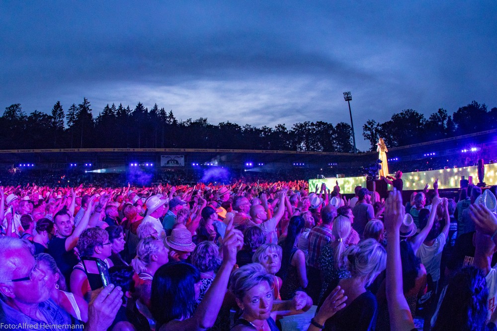 13._Heimspiel_Andrea_Berg__Freitag(1) Mechatronikarena Aspach, 20.7.2018 15000 Besucher waren zum 1. Konzert des 13. Andrea Berg Heimspiel in die Arena in der Fautenau gekommen. Durch die Hitze waren im Vorprogramm nicht soviele Fans wie sonst an der Bühne. Rebel Tell und Sunrise waren Künstler, die im Vorprogramm für die meiste Stimmung sorgten, aber es traten noch andere Künstler auf, u.a. eine Sängerin aus Kleinaspach. Gegen 21 Uhr dann der große Moment, als der Schmetterlingvorhang fiel und Andrea ihr 3 stündiges Konzert begann, sie strahlte mit einem lächeln den ganzen Abend, man merkte, sie freute sich, so wie auch ihre Fans. Mit einem großen Feuerwerk endete ein schöner Sommerabend. |