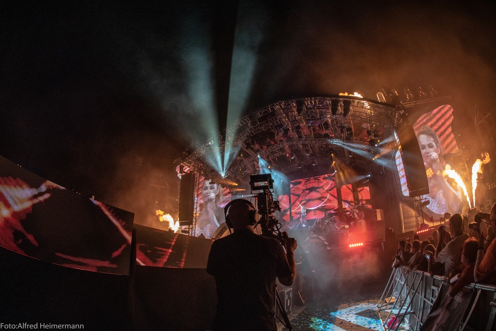 13._Heimspiel_Andrea_Berg__Freitag(1) Mechatronikarena Aspach, 20.7.2018 15000 Besucher waren zum 1. Konzert des 13. Andrea Berg Heimspiel in die Arena in der Fautenau gekommen. Durch die Hitze waren im Vorprogramm nicht soviele Fans wie sonst an der Bühne. Rebel Tell und Sunrise waren Künstler, die im Vorprogramm für die meiste Stimmung sorgten, aber es traten noch andere Künstler auf, u.a. eine Sängerin aus Kleinaspach. Gegen 21 Uhr dann der große Moment, als der Schmetterlingvorhang fiel und Andrea ihr 3 stündiges Konzert begann, sie strahlte mit einem lächeln den ganzen Abend, man merkte, sie freute sich, so wie auch ihre Fans. Mit einem großen Feuerwerk endete ein schöner Sommerabend. |