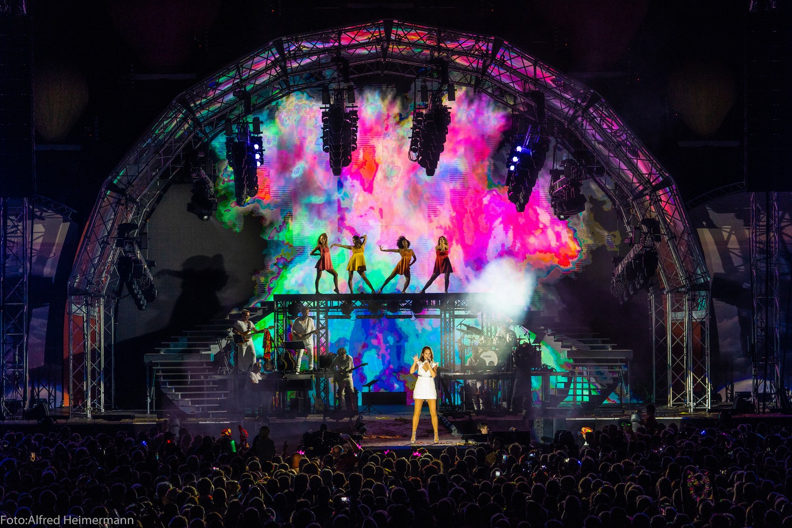 Schon am Nachmittag wurden die Heimspielpilgervon DJ Erich Fuchs und einigen Musikacts in Stimmung versetzt, bevor Andrea Berg die Bühne betrat vor rund 15000 Besuchern und eine gigantische Show absolvierte. Ein buntes Bühnebild , neuer Tänzerinnen und Tänzer sorgten mt der Band dafür, das für Ohr und Auge viele schöne Augenblicke eingefangen werden konnten...die Stimmung war toll und zum Abschluss gab es ein gigantisches Feuerwerk. Maite Kelly konnte an dem Abend wegen Fieber leider nicht auftreten.