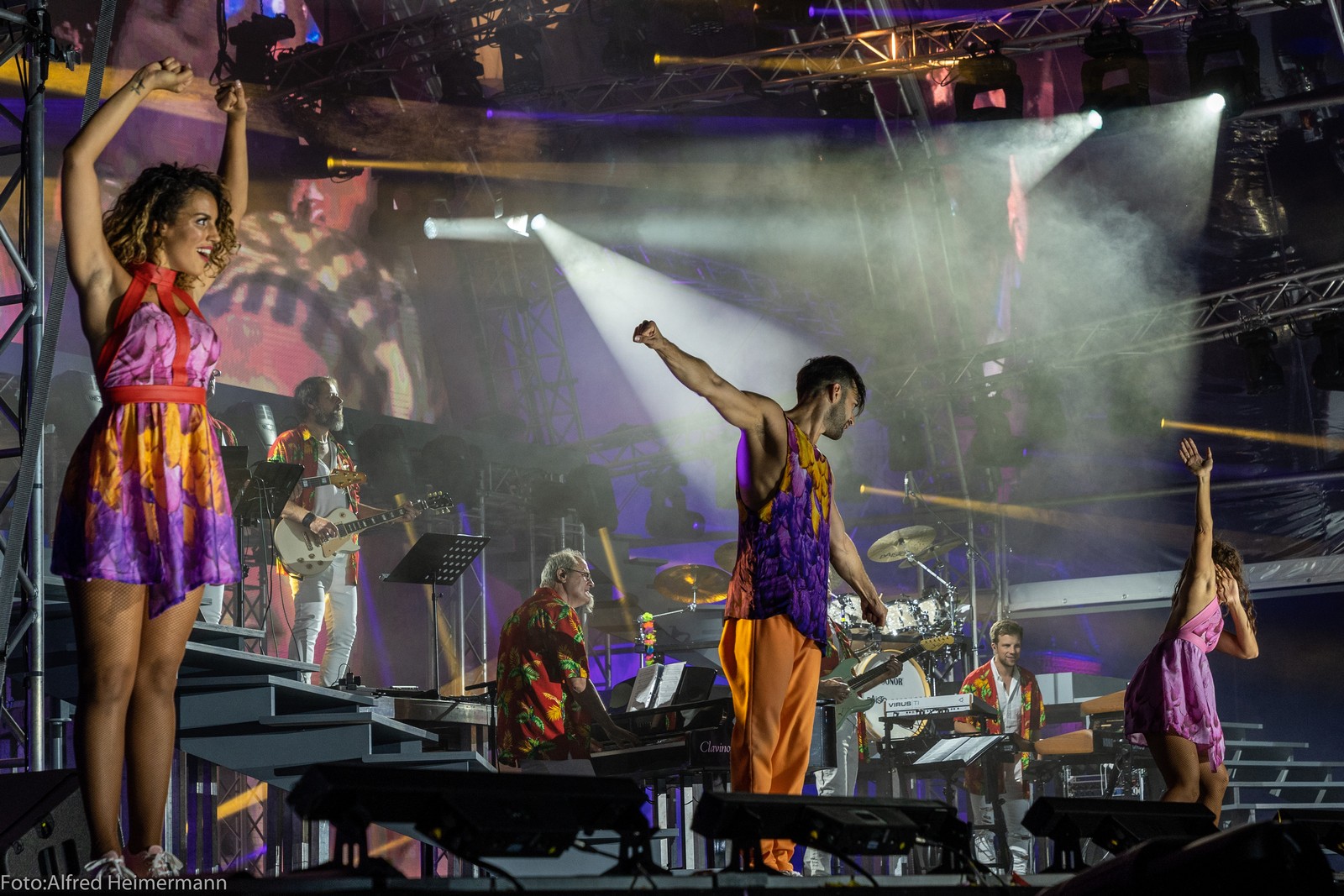 Schon am Nachmittag wurden die Heimspielpilgervon DJ Erich Fuchs und einigen Musikacts in Stimmung versetzt, bevor Andrea Berg die Bühne betrat vor rund 15000 Besuchern und eine gigantische Show absolvierte. Ein buntes Bühnebild , neuer Tänzerinnen und Tänzer sorgten mt der Band dafür, das für Ohr und Auge viele schöne Augenblicke eingefangen werden konnten...die Stimmung war toll und zum Abschluss gab es ein gigantisches Feuerwerk. Maite Kelly konnte an dem Abend wegen Fieber leider nicht auftreten.