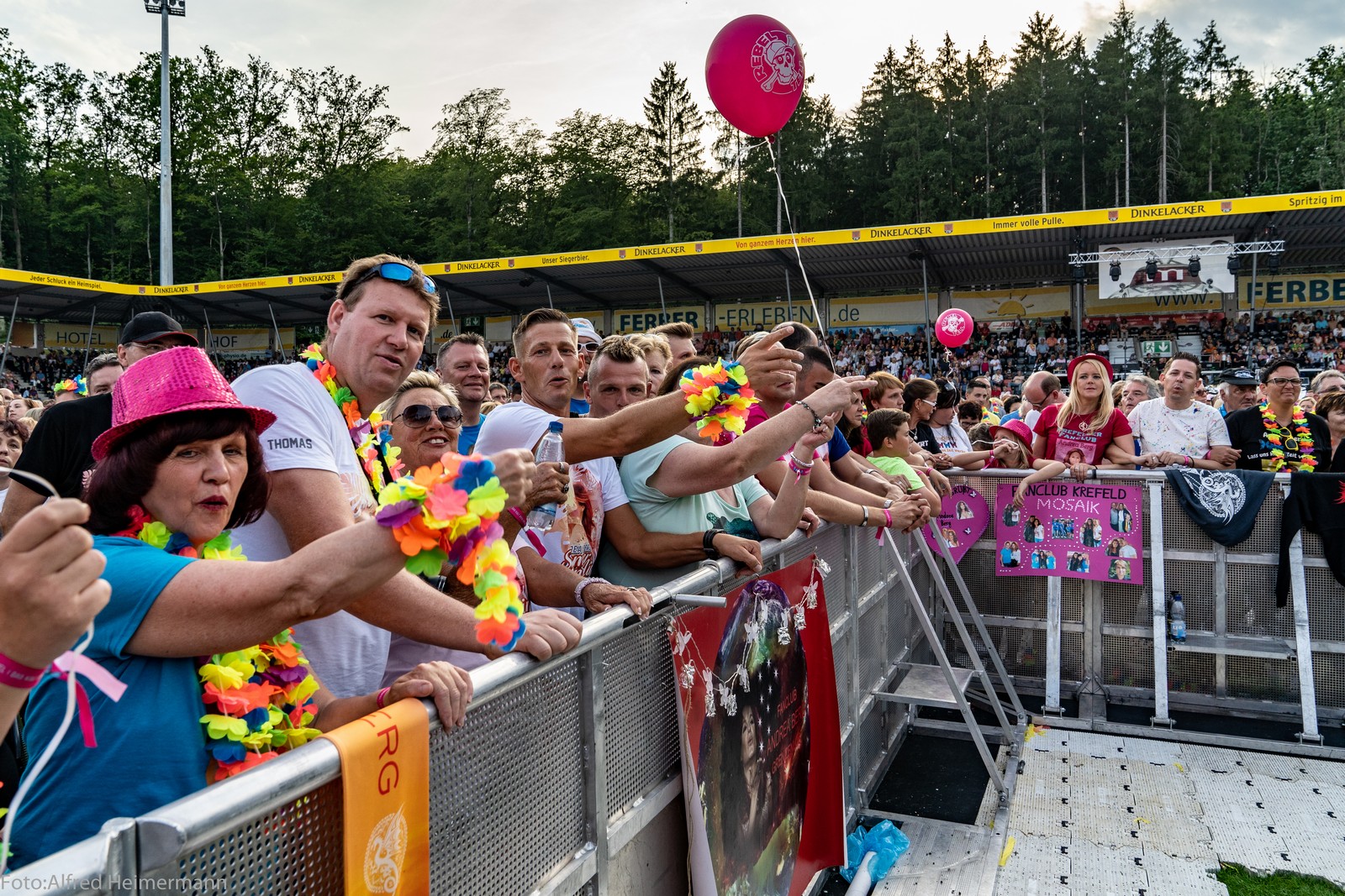 Schon am Nachmittag wurden die Heimspielpilgervon DJ Erich Fuchs und einigen Musikacts in Stimmung versetzt, bevor Andrea Berg die Bühne betrat vor rund 15000 Besuchern und eine gigantische Show absolvierte. Ein buntes Bühnebild , neuer Tänzerinnen und Tänzer sorgten mt der Band dafür, das für Ohr und Auge viele schöne Augenblicke eingefangen werden konnten...die Stimmung war toll und zum Abschluss gab es ein gigantisches Feuerwerk. Maite Kelly konnte an dem Abend wegen Fieber leider nicht auftreten.