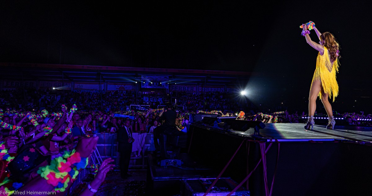 Volles Stadion und großartige Stimmung von 16-24 Uhr beim Heimspiel am Samstag. Maite Kelly war wieder gesund und konnte ein paar Lieder singen und natürlich auch ein Duett mit Andrea. Andrea war bgerührt, sie liebt halt ihren Beruf und freut sich, wenn ihre Fans sich an ihrer Musik erfreuen.