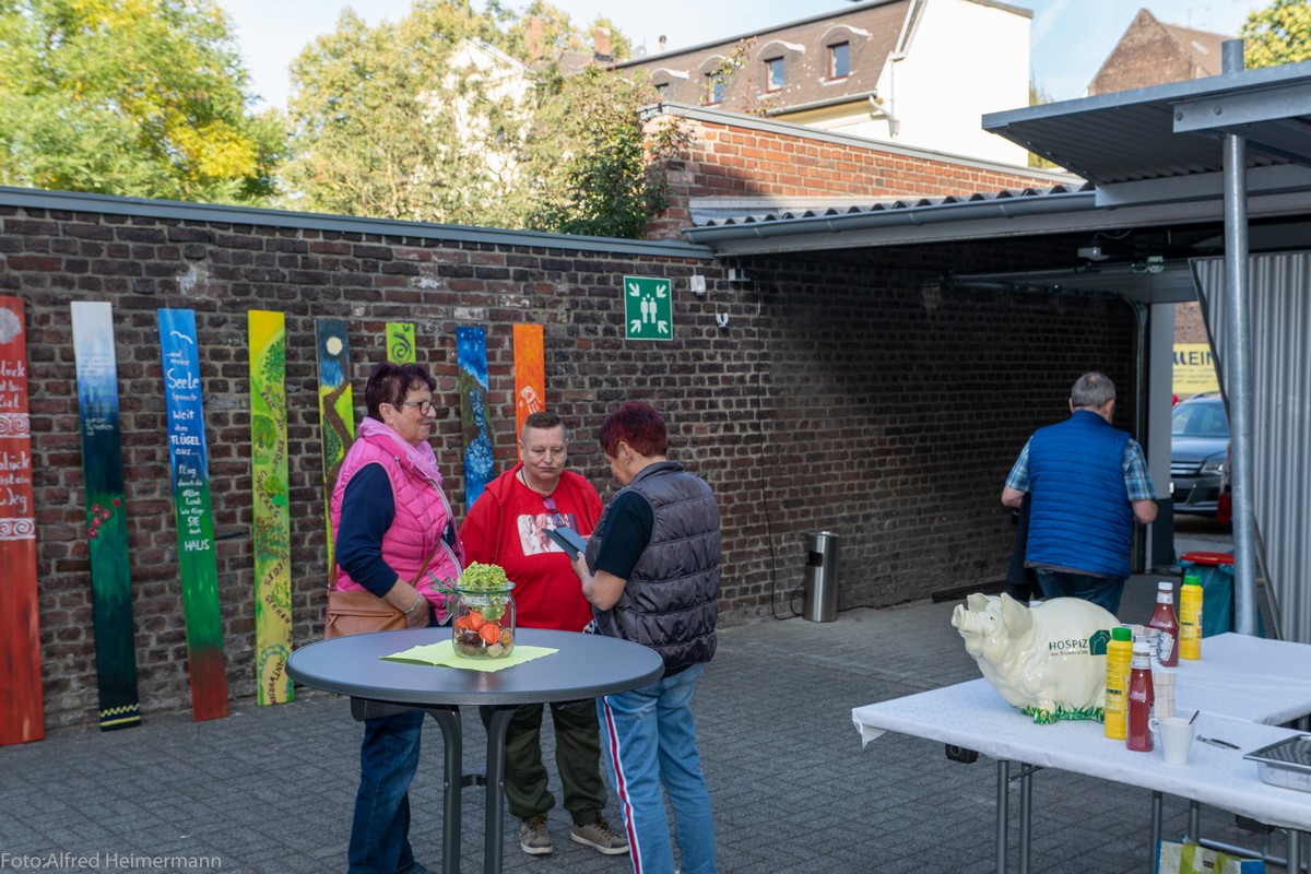 9. Hospizlauf in Krefeld Hospiz am Blumenplatz in Krefeld Rund 1000 Laufer und Läuferinnen waren an verschiedenen Stelle in Krefeld auf verschiedenen langen Strecken gestartet. Ziel war das Hospiz am Blumenplatz. Viele Gäste (Sterbenskranke) vom hospiz warteten am Hospiz auf die Sportler, die mit dem Lauf und dem Startgeld von 10 Euro die tolle Arbeit der Hospizmitarbeiter/innen unterstützen. Das Wetter war optimal. Eine bunte Anzahl von Mitgliedern aus verschiedenen Andrea berg Fanclubs waren aus ´nah und fern angereist, um die ehrenamtlichen Hospizhelfer bei der Arbeit zu unterstützen, ob beim Auf-und Abbau, oder bei der Ausgabe von Obst, Getränken und Grillwürstchen. Toll das mein Aufruf an die Fans auch Kuchen zu backen und mitzubringen, befolgt wurde und die 16 oder 17 Kuchen nur von den Andrea Berg Fans aus den Fanclubs waren nicht zuviel, denn zum Ende war fast alles aufgegessen. Beliebt wie seit einigen Jahren, sind die Würstchen von der Metzgerei Hielscher, die der FC Hennef mitbringt. Der Fanclub Hennef präsentierte aber auch erstmals "live" den 12. Andrea Berg Fankalender 2020, der ja zu gunsten der Hospizarbeit Krefeld erstelllt wird. Der Hospizgarten muss erneuert werden und ein Teil der Kalenderspendengeldern der letzten Jahre wird für den Garten und ein neues Dach dort verwendet. Im nächsten Jahr wird groß gefeiert, denn dann kommen die Spendenläufer zum 10. Hospizlauf. |