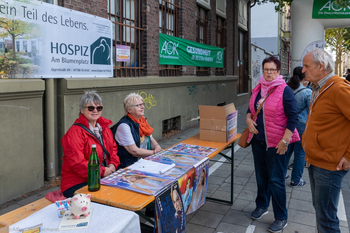 9. Hospizlauf in Krefeld Hospiz am Blumenplatz in Krefeld Rund 1000 Laufer und Läuferinnen waren an verschiedenen Stelle in Krefeld auf verschiedenen langen Strecken gestartet. Ziel war das Hospiz am Blumenplatz. Viele Gäste (Sterbenskranke) vom hospiz warteten am Hospiz auf die Sportler, die mit dem Lauf und dem Startgeld von 10 Euro die tolle Arbeit der Hospizmitarbeiter/innen unterstützen. Das Wetter war optimal. Eine bunte Anzahl von Mitgliedern aus verschiedenen Andrea berg Fanclubs waren aus ´nah und fern angereist, um die ehrenamtlichen Hospizhelfer bei der Arbeit zu unterstützen, ob beim Auf-und Abbau, oder bei der Ausgabe von Obst, Getränken und Grillwürstchen. Toll das mein Aufruf an die Fans auch Kuchen zu backen und mitzubringen, befolgt wurde und die 16 oder 17 Kuchen nur von den Andrea Berg Fans aus den Fanclubs waren nicht zuviel, denn zum Ende war fast alles aufgegessen. Beliebt wie seit einigen Jahren, sind die Würstchen von der Metzgerei Hielscher, die der FC Hennef mitbringt. Der Fanclub Hennef präsentierte aber auch erstmals "live" den 12. Andrea Berg Fankalender 2020, der ja zu gunsten der Hospizarbeit Krefeld erstelllt wird. Der Hospizgarten muss erneuert werden und ein Teil der Kalenderspendengeldern der letzten Jahre wird für den Garten und ein neues Dach dort verwendet. Im nächsten Jahr wird groß gefeiert, denn dann kommen die Spendenläufer zum 10. Hospizlauf. |
