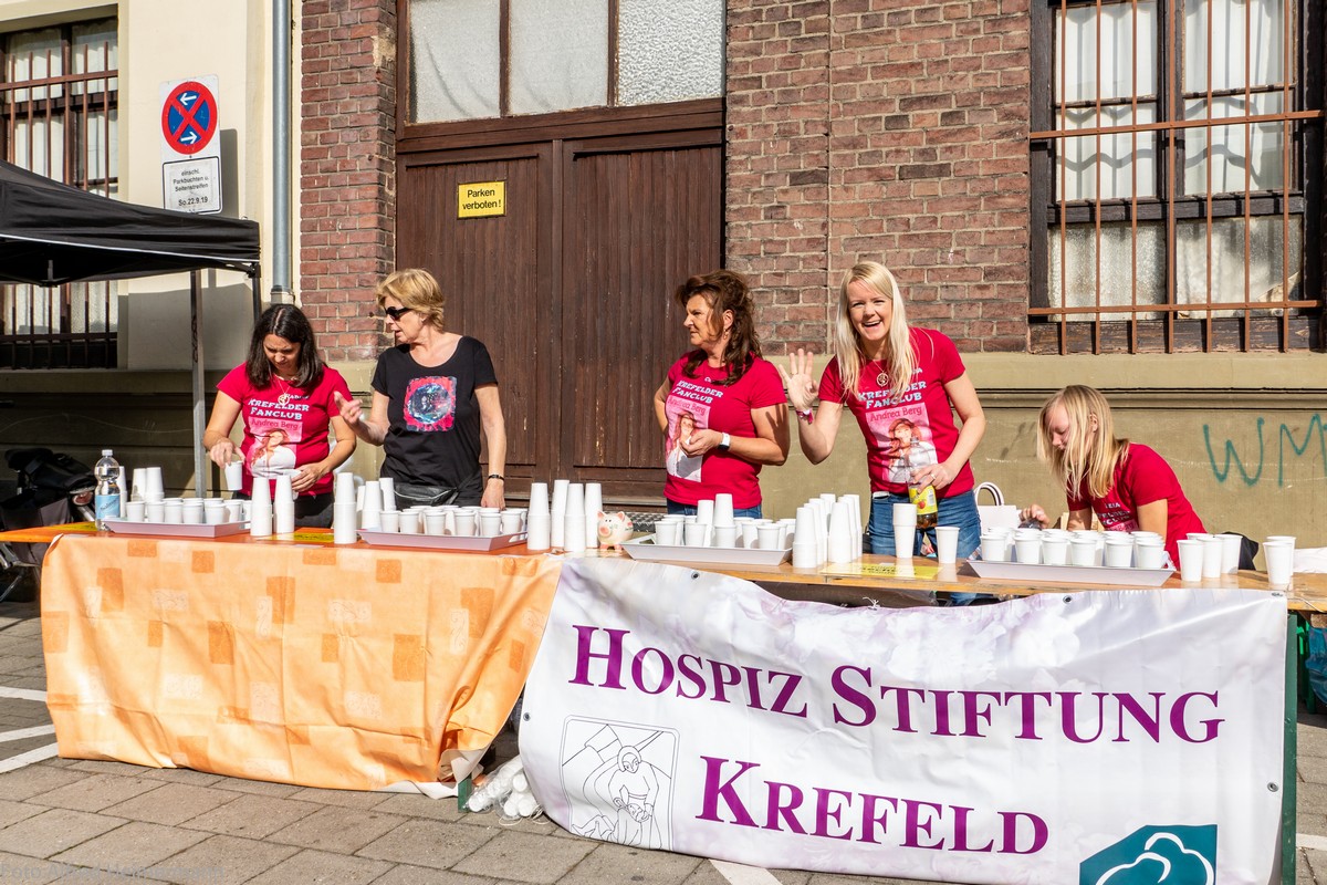 9. Hospizlauf in Krefeld Hospiz am Blumenplatz in Krefeld Rund 1000 Laufer und Läuferinnen waren an verschiedenen Stelle in Krefeld auf verschiedenen langen Strecken gestartet. Ziel war das Hospiz am Blumenplatz. Viele Gäste (Sterbenskranke) vom hospiz warteten am Hospiz auf die Sportler, die mit dem Lauf und dem Startgeld von 10 Euro die tolle Arbeit der Hospizmitarbeiter/innen unterstützen. Das Wetter war optimal. Eine bunte Anzahl von Mitgliedern aus verschiedenen Andrea berg Fanclubs waren aus ´nah und fern angereist, um die ehrenamtlichen Hospizhelfer bei der Arbeit zu unterstützen, ob beim Auf-und Abbau, oder bei der Ausgabe von Obst, Getränken und Grillwürstchen. Toll das mein Aufruf an die Fans auch Kuchen zu backen und mitzubringen, befolgt wurde und die 16 oder 17 Kuchen nur von den Andrea Berg Fans aus den Fanclubs waren nicht zuviel, denn zum Ende war fast alles aufgegessen. Beliebt wie seit einigen Jahren, sind die Würstchen von der Metzgerei Hielscher, die der FC Hennef mitbringt. Der Fanclub Hennef präsentierte aber auch erstmals "live" den 12. Andrea Berg Fankalender 2020, der ja zu gunsten der Hospizarbeit Krefeld erstelllt wird. Der Hospizgarten muss erneuert werden und ein Teil der Kalenderspendengeldern der letzten Jahre wird für den Garten und ein neues Dach dort verwendet. Im nächsten Jahr wird groß gefeiert, denn dann kommen die Spendenläufer zum 10. Hospizlauf. |