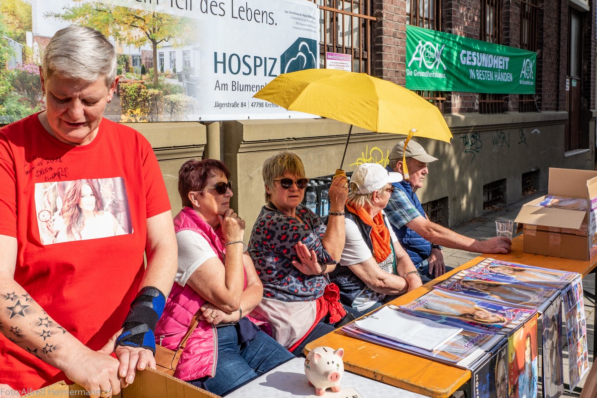 9. Hospizlauf in Krefeld Hospiz am Blumenplatz in Krefeld Rund 1000 Laufer und Läuferinnen waren an verschiedenen Stelle in Krefeld auf verschiedenen langen Strecken gestartet. Ziel war das Hospiz am Blumenplatz. Viele Gäste (Sterbenskranke) vom hospiz warteten am Hospiz auf die Sportler, die mit dem Lauf und dem Startgeld von 10 Euro die tolle Arbeit der Hospizmitarbeiter/innen unterstützen. Das Wetter war optimal. Eine bunte Anzahl von Mitgliedern aus verschiedenen Andrea berg Fanclubs waren aus ´nah und fern angereist, um die ehrenamtlichen Hospizhelfer bei der Arbeit zu unterstützen, ob beim Auf-und Abbau, oder bei der Ausgabe von Obst, Getränken und Grillwürstchen. Toll das mein Aufruf an die Fans auch Kuchen zu backen und mitzubringen, befolgt wurde und die 16 oder 17 Kuchen nur von den Andrea Berg Fans aus den Fanclubs waren nicht zuviel, denn zum Ende war fast alles aufgegessen. Beliebt wie seit einigen Jahren, sind die Würstchen von der Metzgerei Hielscher, die der FC Hennef mitbringt. Der Fanclub Hennef präsentierte aber auch erstmals "live" den 12. Andrea Berg Fankalender 2020, der ja zu gunsten der Hospizarbeit Krefeld erstelllt wird. Der Hospizgarten muss erneuert werden und ein Teil der Kalenderspendengeldern der letzten Jahre wird für den Garten und ein neues Dach dort verwendet. Im nächsten Jahr wird groß gefeiert, denn dann kommen die Spendenläufer zum 10. Hospizlauf. |