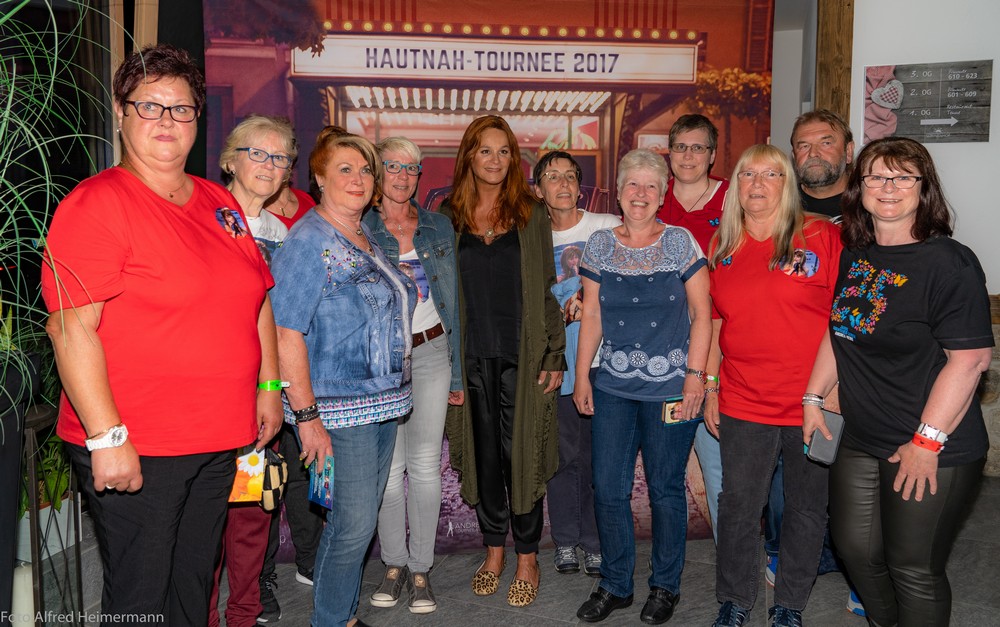 Andrea Berg Konzert am 24. Mai 2018 im Sonnenhof Aspach, Hotel Sonnenhof In diesem Jahr tritt Andrea ja nur im Snnenhof und bei ihem Heimspiel auf, also ganz besondere Konzerte für jeden Fan. Diesmal waren viele bekannte langjährige Fans anwesend, aber auch viele junge Fans. Andrea begrüßte Fans aus Frankreich, Österreich, Schjweiz, Deutschland , Beligien....also aus ganz Europa und brachte alle sehr schnell in gute Stimmung, sodass sie erst nach dem Song: "Ja ich will" die Bühne nach über 2,5 Stunden verließ und dann wie geohnt für Fotos mit den Fans zur Verfügung stand. |