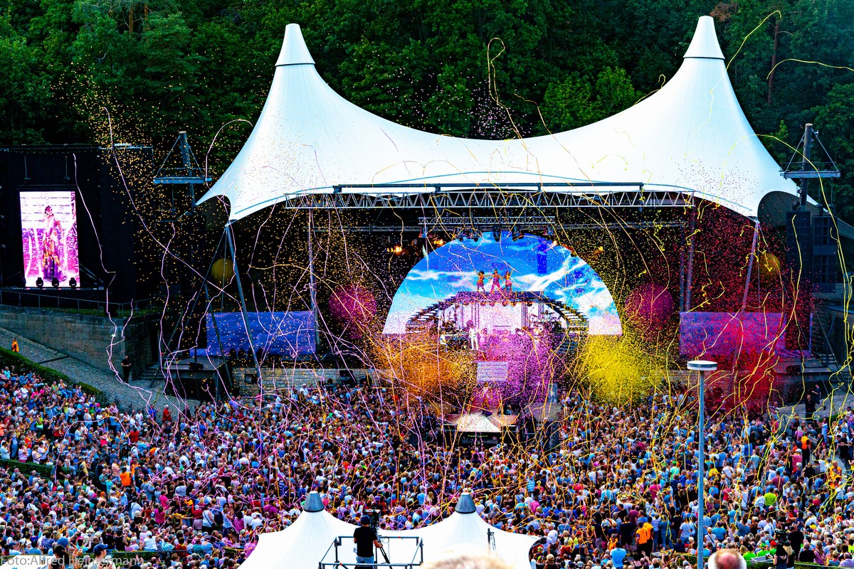 Immer ein besonderes Konzert in Berlin auf der Waldbühne von Andrea Berg. Fans aus ganz Deutschland und Österreich waren nach Berlin gepilgert um mit den 22000 Besuchern eine große Party bei bestem Sommerwetter zu feiern und alle waren begeistert. Zum Abschluss gab es noch ein Feuerwerk, was die Waldbühne erhellen ließ.