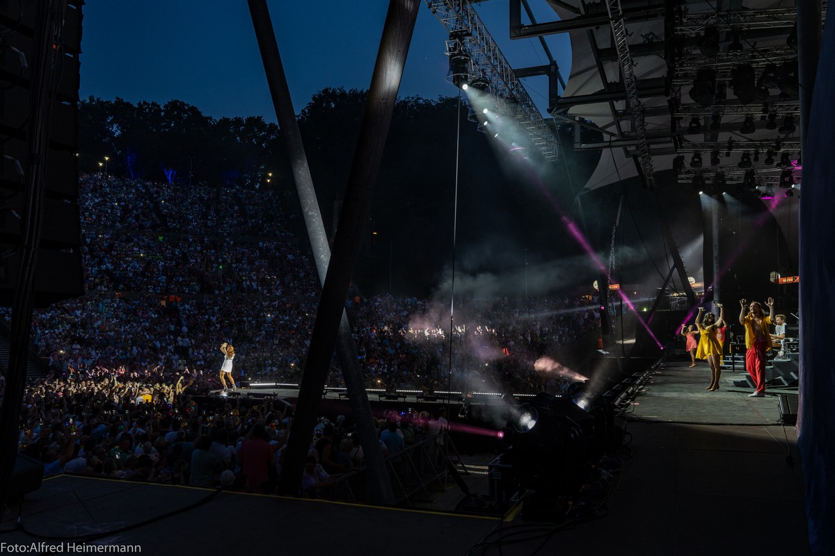 Immer ein besonderes Konzert in Berlin auf der Waldbühne von Andrea Berg. Fans aus ganz Deutschland und Österreich waren nach Berlin gepilgert um mit den 22000 Besuchern eine große Party bei bestem Sommerwetter zu feiern und alle waren begeistert. Zum Abschluss gab es noch ein Feuerwerk, was die Waldbühne erhellen ließ.