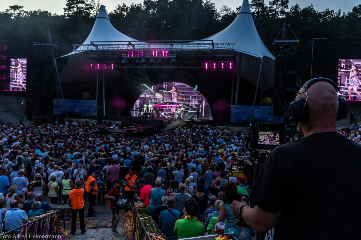 Immer ein besonderes Konzert in Berlin auf der Waldbühne von Andrea Berg. Fans aus ganz Deutschland und Österreich waren nach Berlin gepilgert um mit den 22000 Besuchern eine große Party bei bestem Sommerwetter zu feiern und alle waren begeistert. Zum Abschluss gab es noch ein Feuerwerk, was die Waldbühne erhellen ließ.