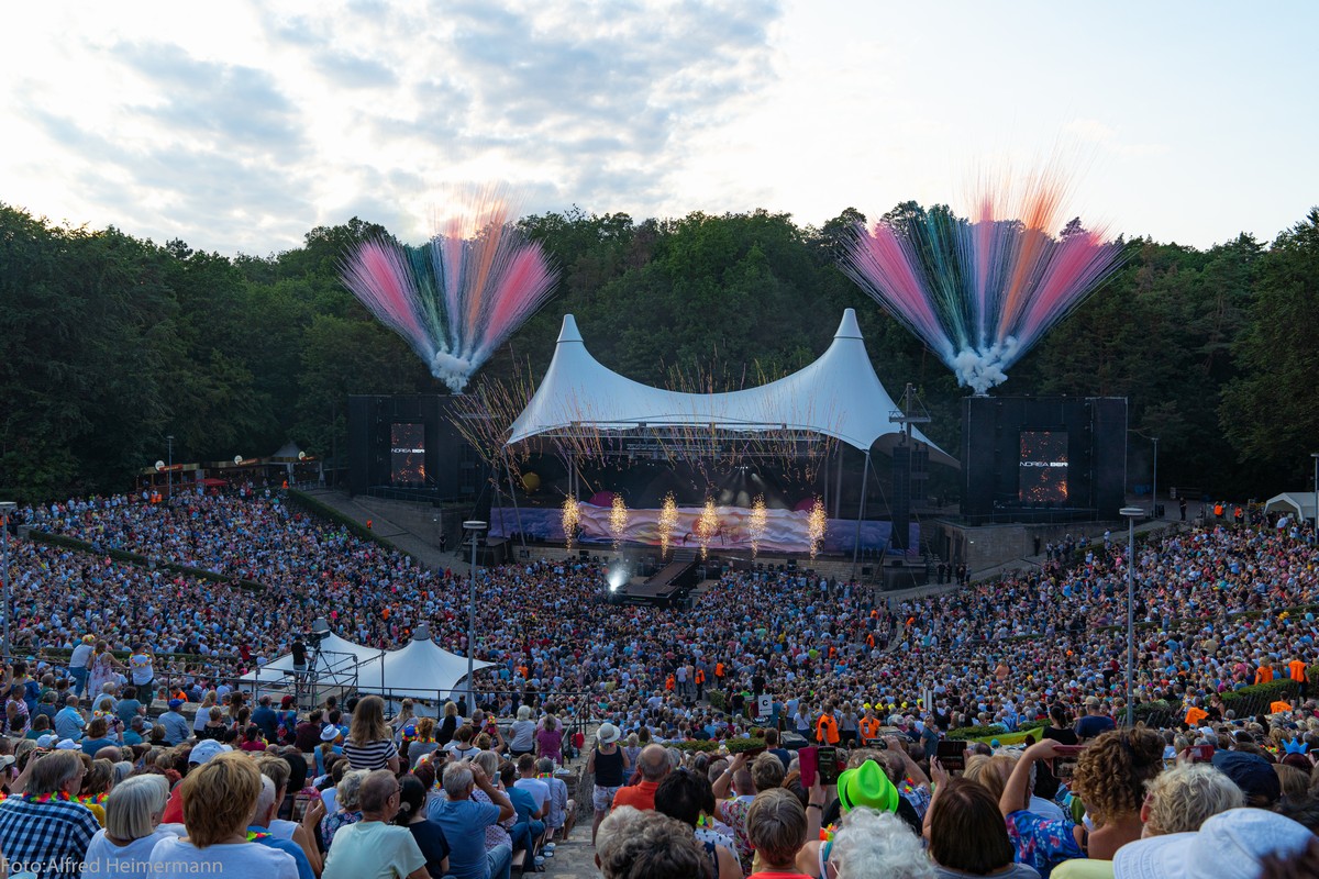 Immer ein besonderes Konzert in Berlin auf der Waldbühne von Andrea Berg. Fans aus ganz Deutschland und Österreich waren nach Berlin gepilgert um mit den 22000 Besuchern eine große Party bei bestem Sommerwetter zu feiern und alle waren begeistert. Zum Abschluss gab es noch ein Feuerwerk, was die Waldbühne erhellen ließ.