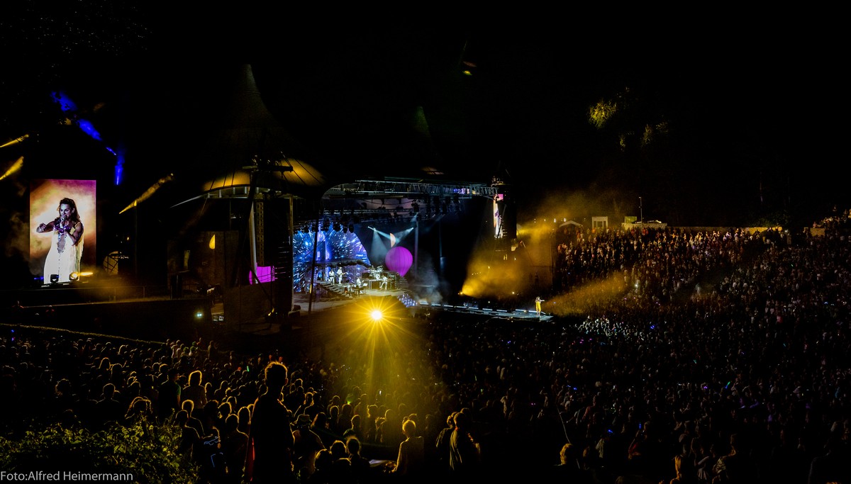 Immer ein besonderes Konzert in Berlin auf der Waldbühne von Andrea Berg. Fans aus ganz Deutschland und Österreich waren nach Berlin gepilgert um mit den 22000 Besuchern eine große Party bei bestem Sommerwetter zu feiern und alle waren begeistert. Zum Abschluss gab es noch ein Feuerwerk, was die Waldbühne erhellen ließ.