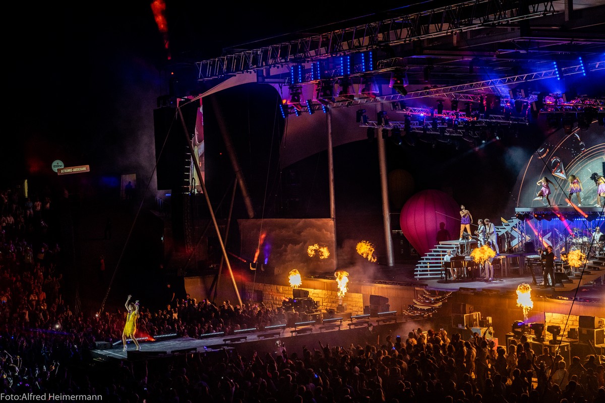 Immer ein besonderes Konzert in Berlin auf der Waldbühne von Andrea Berg. Fans aus ganz Deutschland und Österreich waren nach Berlin gepilgert um mit den 22000 Besuchern eine große Party bei bestem Sommerwetter zu feiern und alle waren begeistert. Zum Abschluss gab es noch ein Feuerwerk, was die Waldbühne erhellen ließ.