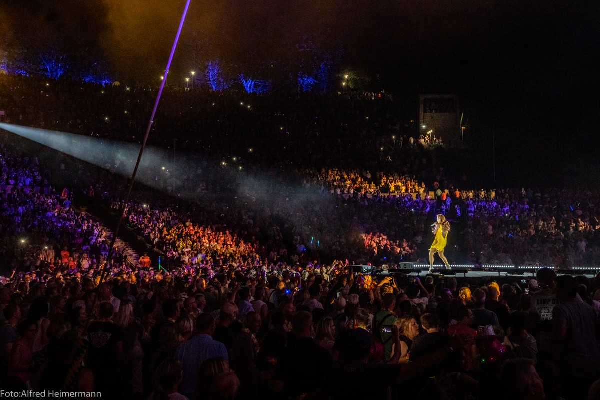 Immer ein besonderes Konzert in Berlin auf der Waldbühne von Andrea Berg. Fans aus ganz Deutschland und Österreich waren nach Berlin gepilgert um mit den 22000 Besuchern eine große Party bei bestem Sommerwetter zu feiern und alle waren begeistert. Zum Abschluss gab es noch ein Feuerwerk, was die Waldbühne erhellen ließ.