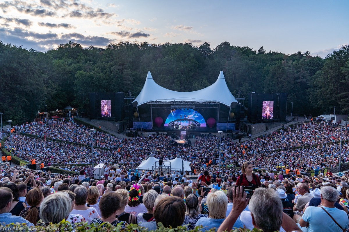 Immer ein besonderes Konzert in Berlin auf der Waldbühne von Andrea Berg. Fans aus ganz Deutschland und Österreich waren nach Berlin gepilgert um mit den 22000 Besuchern eine große Party bei bestem Sommerwetter zu feiern und alle waren begeistert. Zum Abschluss gab es noch ein Feuerwerk, was die Waldbühne erhellen ließ.