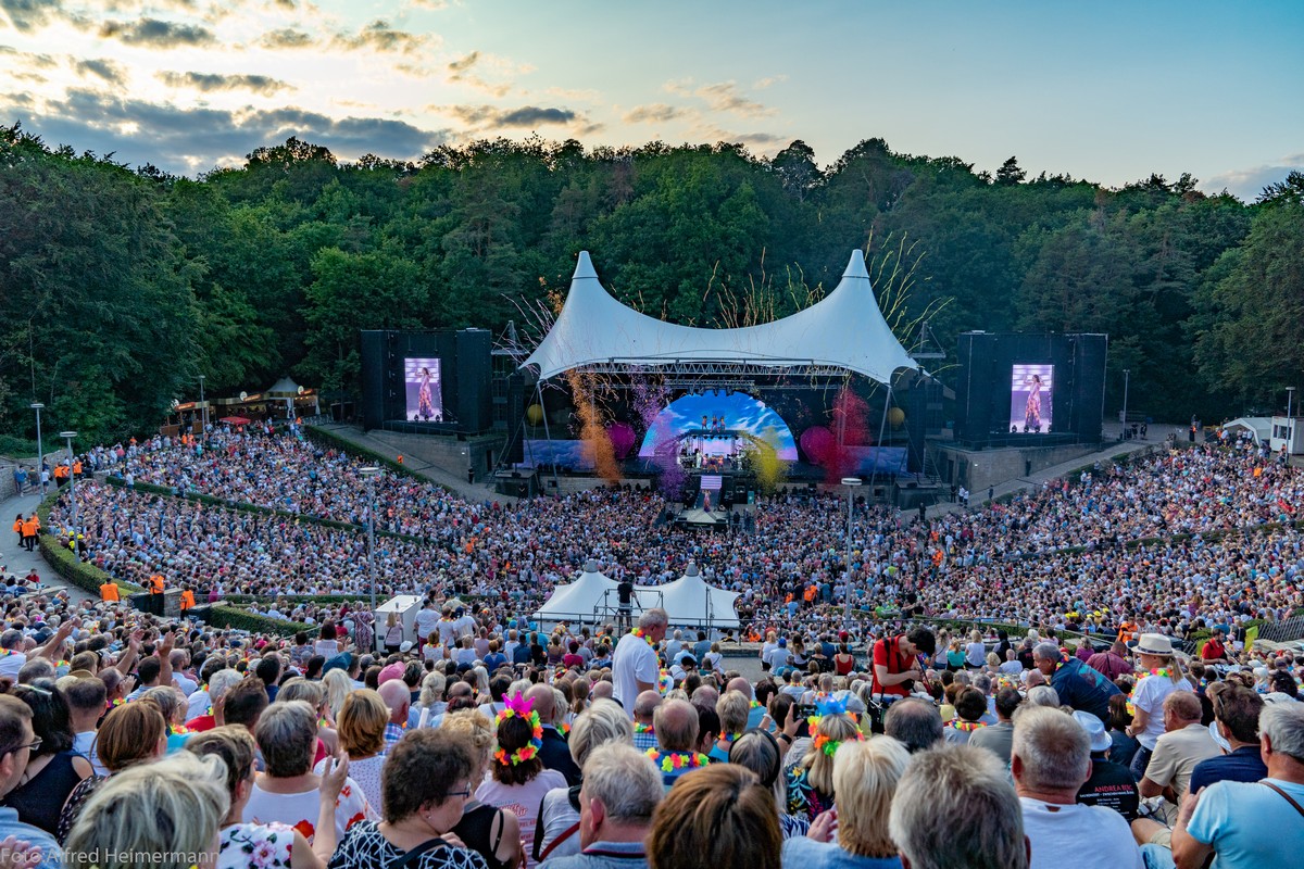 Immer ein besonderes Konzert in Berlin auf der Waldbühne von Andrea Berg. Fans aus ganz Deutschland und Österreich waren nach Berlin gepilgert um mit den 22000 Besuchern eine große Party bei bestem Sommerwetter zu feiern und alle waren begeistert. Zum Abschluss gab es noch ein Feuerwerk, was die Waldbühne erhellen ließ.