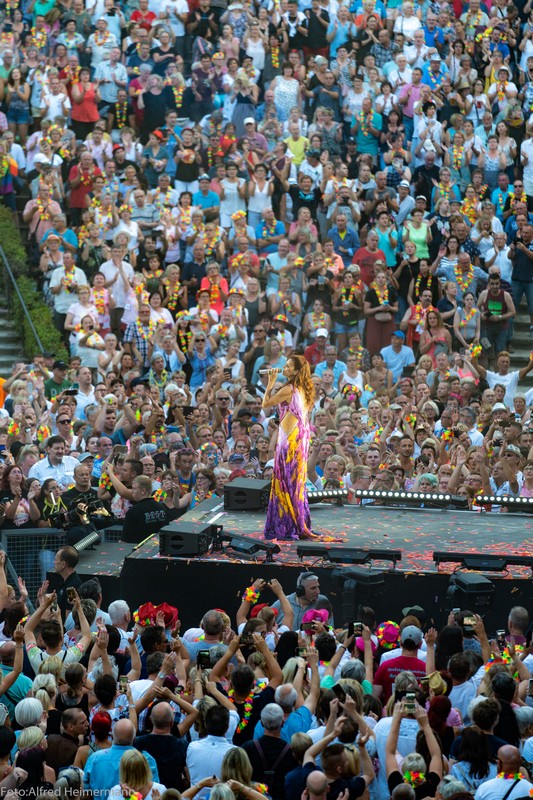 Immer ein besonderes Konzert in Berlin auf der Waldbühne von Andrea Berg. Fans aus ganz Deutschland und Österreich waren nach Berlin gepilgert um mit den 22000 Besuchern eine große Party bei bestem Sommerwetter zu feiern und alle waren begeistert. Zum Abschluss gab es noch ein Feuerwerk, was die Waldbühne erhellen ließ.