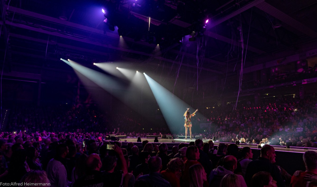 Andrea_Berg_in_Trier Arena Trier 26. Januar 2020 Ausverkauft war die Arena in Trier, dafür bekam Andrea vom Gastgeber einen Award und Mosel Wein. Neben den Moselanern waren auch viele Fans aus Luxemburg und Belgien angereist um mit Andrea eine stimmungsvolle Party zu feiern. |