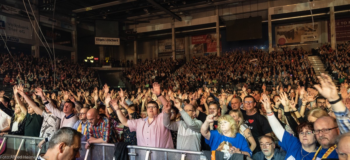 Andrea_Berg_in_Trier Arena Trier 26. Januar 2020 Ausverkauft war die Arena in Trier, dafür bekam Andrea vom Gastgeber einen Award und Mosel Wein. Neben den Moselanern waren auch viele Fans aus Luxemburg und Belgien angereist um mit Andrea eine stimmungsvolle Party zu feiern. |