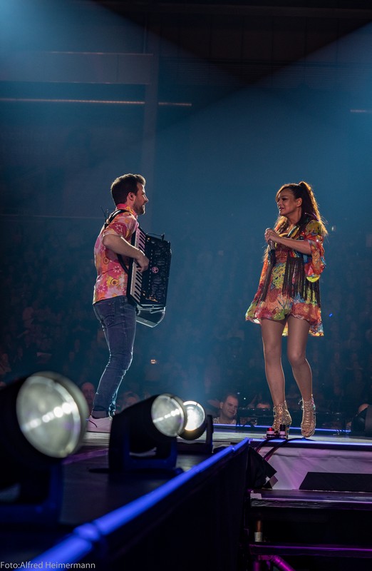 Andrea_Berg_in_Trier Arena Trier 26. Januar 2020 Ausverkauft war die Arena in Trier, dafür bekam Andrea vom Gastgeber einen Award und Mosel Wein. Neben den Moselanern waren auch viele Fans aus Luxemburg und Belgien angereist um mit Andrea eine stimmungsvolle Party zu feiern. |