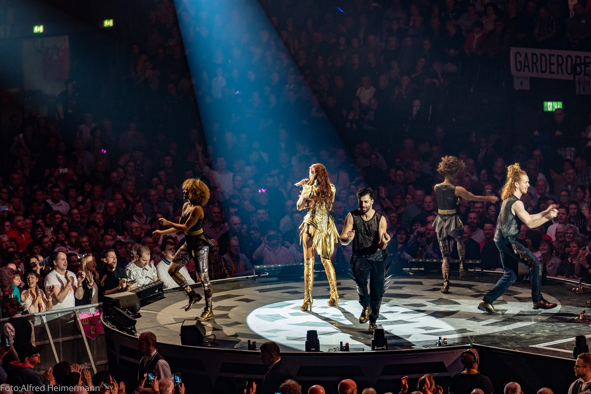 Andrea_Berg_in_Trier Arena Trier 26. Januar 2020 Ausverkauft war die Arena in Trier, dafür bekam Andrea vom Gastgeber einen Award und Mosel Wein. Neben den Moselanern waren auch viele Fans aus Luxemburg und Belgien angereist um mit Andrea eine stimmungsvolle Party zu feiern. |