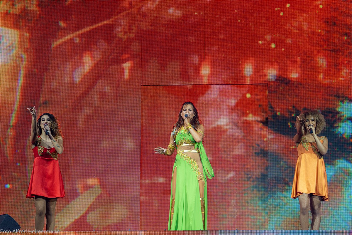 Ca. 5500 Besucher verfolgten die Premiere der Mosaik Tour von Andrea Berg. Über 3,5 Stunden erlebten die Fans eine bunte Show durch mehrere Zeiten und Welten. Viele wurde ausprobiert und einiges wird sicher noch verändert. Andrea war sehr aufgeregt und emetional.