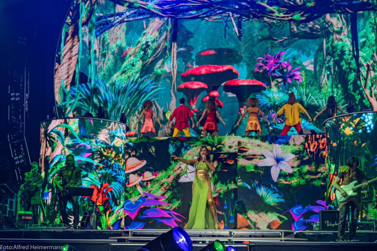 Ca. 5500 Besucher verfolgten die Premiere der Mosaik Tour von Andrea Berg. Über 3,5 Stunden erlebten die Fans eine bunte Show durch mehrere Zeiten und Welten. Viele wurde ausprobiert und einiges wird sicher noch verändert. Andrea war sehr aufgeregt und emetional.