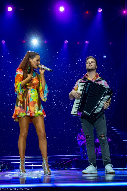 Ca. 5500 Besucher verfolgten die Premiere der Mosaik Tour von Andrea Berg. Über 3,5 Stunden erlebten die Fans eine bunte Show durch mehrere Zeiten und Welten. Viele wurde ausprobiert und einiges wird sicher noch verändert. Andrea war sehr aufgeregt und emetional.