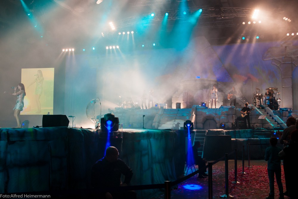 Atlantis-Tour Erfurt erstes Konzert mit Bestuhlung Erfurt, Sonntag 12.1.2014 Um 16 Uhr begann das 2 Konzert von Andrea in der Messehalle in Erfurt. Es war das erste Konzert von Andrea, wo keine Stehplätze um die Bühne waren, sondern Sitzplätze. Da es für sie ungewohnt war, sprach sie die Zuschauer mit "SIE" an, bemerkte es und meinte sie sage immer Du. An diesem sonntag war die Halle auch wieder voll. |