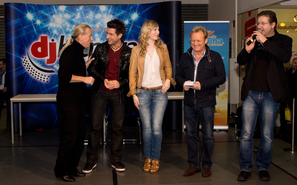 Im Einkaufszentrum HUMA präsentierte Uwe Hübner die CD der DJ-Htparade, Folge 2 und hatte die Künstler, Franziska, Michel Fischer und Christian Anders mit dabei, die alle ein paar Lieder live sangen.