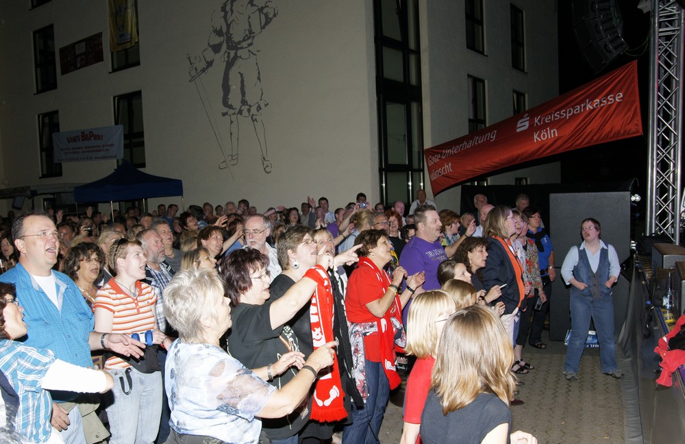 Bei tollem Wetter und vollem Platz, fand auch das 6. Openairkonzert der Westerwaldsterne auf dem hotelgelände des Schaukelkellers in Hennef-Uckertah statt. Als Vorgruppe trat wieder die Marc Fischer Band um 19:15 Uhr auf die Bühne und stimmte das Publikum mit Musik aus dem Pop-Rock und Schlagerbereich ein...auf die Bläck Fööss, die dann um 21 Uhr auf die Bühne traten, leider ohne den erkrankten Ery. Die Fööss begeistertten wieder mal.