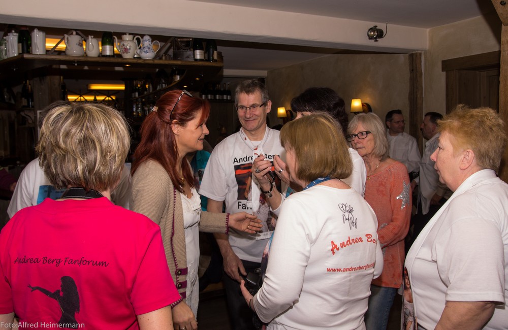 Fanclubleitertreffen 2015 Aspach, Sonnenhof Die Fanclubleiter von 23 Andrea Berg Fanclubs waren auf Einladung von Andrea Berg in den Sonnehnhof in Aspach gekommen und erlebten 2 schöne Tage bei Andrea und mit Andrea. Nachdem treffen ging es dann gemeionsam nach Oberstenfeld zur Typosierung für den kleinen Felix, der an Lekamie erkrankt ist, dort standen tausende Menschen um sich Typosieren zu lassen, hoffe der richtige Spender wird gefunden. |