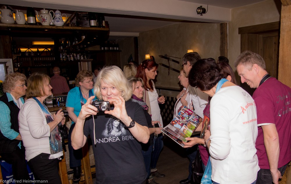 Fanclubleitertreffen 2015 Aspach, Sonnenhof Die Fanclubleiter von 23 Andrea Berg Fanclubs waren auf Einladung von Andrea Berg in den Sonnehnhof in Aspach gekommen und erlebten 2 schöne Tage bei Andrea und mit Andrea. Nachdem treffen ging es dann gemeionsam nach Oberstenfeld zur Typosierung für den kleinen Felix, der an Lekamie erkrankt ist, dort standen tausende Menschen um sich Typosieren zu lassen, hoffe der richtige Spender wird gefunden. |