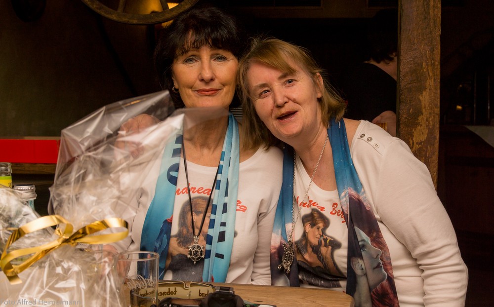 Fanclubleitertreffen 2015 Aspach, Sonnenhof Die Fanclubleiter von 23 Andrea Berg Fanclubs waren auf Einladung von Andrea Berg in den Sonnehnhof in Aspach gekommen und erlebten 2 schöne Tage bei Andrea und mit Andrea. Nachdem treffen ging es dann gemeionsam nach Oberstenfeld zur Typosierung für den kleinen Felix, der an Lekamie erkrankt ist, dort standen tausende Menschen um sich Typosieren zu lassen, hoffe der richtige Spender wird gefunden. |