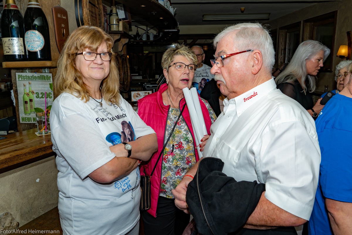 100 Fanclubleiter mit Stellvertretern waren der Einladung von Andrea und Uli in den Sonnenhof gefolgt und verfolgten Samstag im TV das fest der Feste, wo Andrea zur besten Sängerin 2020 , mit dem erfolgreichsten Album des Jahres ausgezeichnet wurde und noch eine Platin Auszeichnung für das AlbumMosaik bekam. Sonntag war dann Andrea gegen Mittag wieder aus Berlin zurück und verweilte bei ihren Fanclubleitern in der Dorfdiele, zuvor das traditionelle Gruppenfoto vor dem Hotel. Nachdem gemeinsamen Mittagesen Fototime mit Andrea und gleichzeitigem signieren von Fotos, Shirts, Albums. Gegen 16 Uhr endete das Treffen.