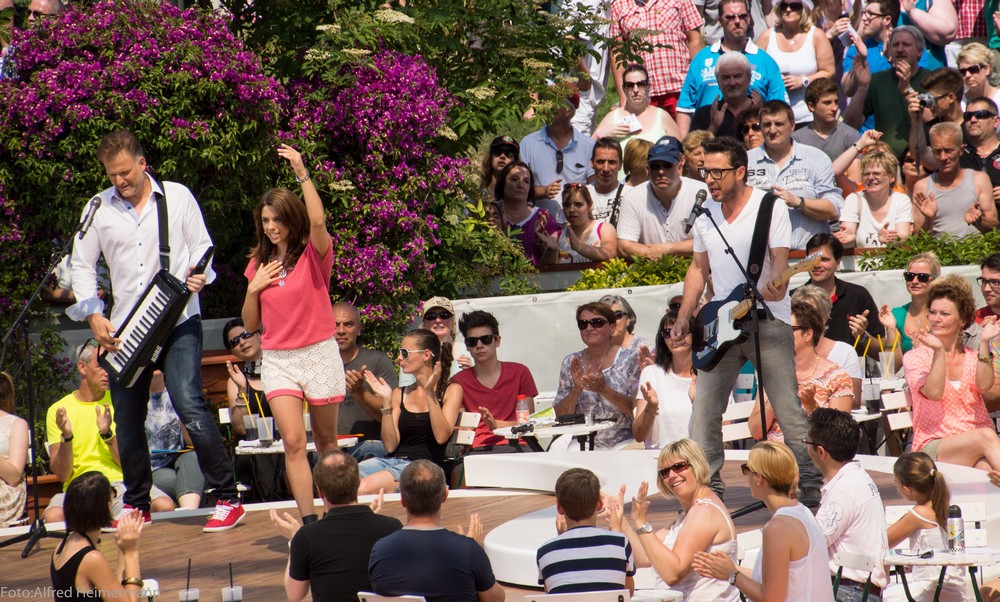 Fernsehgarten Pfingsten ZDF-Mainz Bei 35° auf dem Fernsehgartengelände kamen alle Gäste und Zuschauer zum Schwitzen, Wolkenfrei hatte ihren ersten Auftritt im Fernsehgarten. |