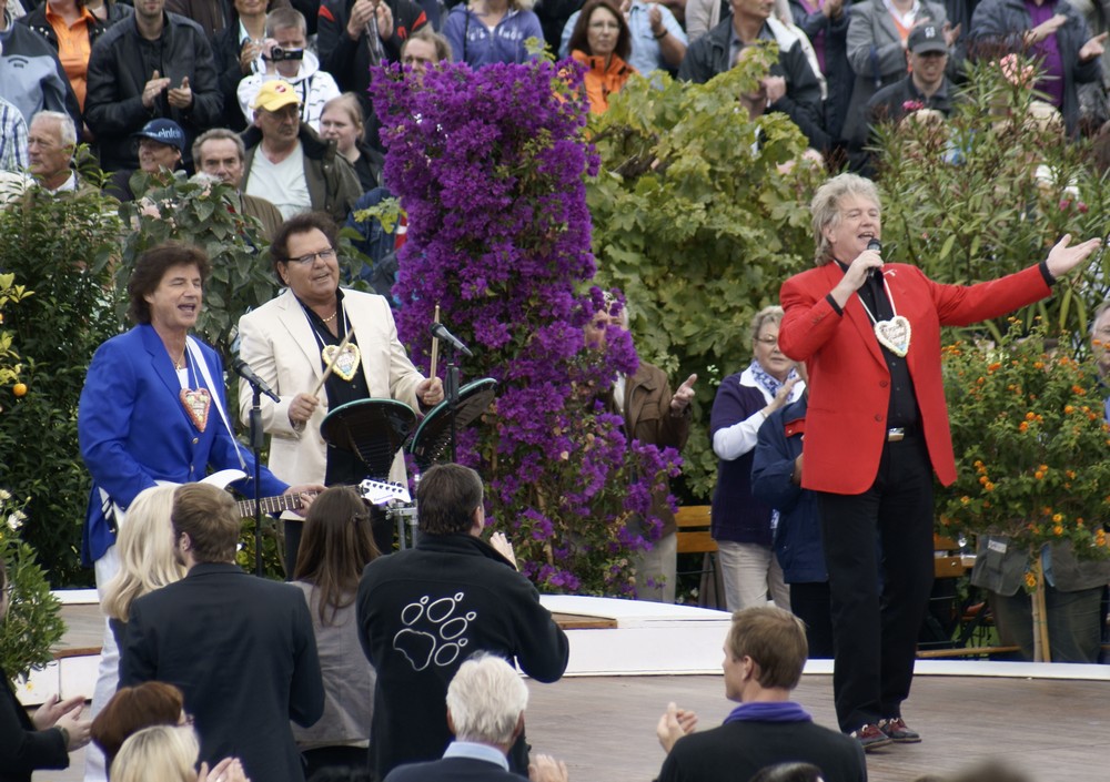 Viele Fans von Helene Fischer waren iin den Fernsehgarten gepilgert und erlebten eine gut gelaunte helene, die zahlreiche Autogrammwünsche erfüllte. Es war aber auch der letzte Auftritt der Flippers im Fernsehgarten.