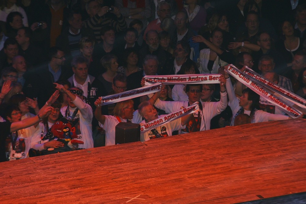 Konzert Halle Konzert Halle Auch das Gerry Weber Stadion war bis auf den letzten Platz voll besetzt und das Piratenschiff konnte nur verkürzt aufgebaut werden, es war alles sehr nah ander Bühne, was Andrea gefiel. |
