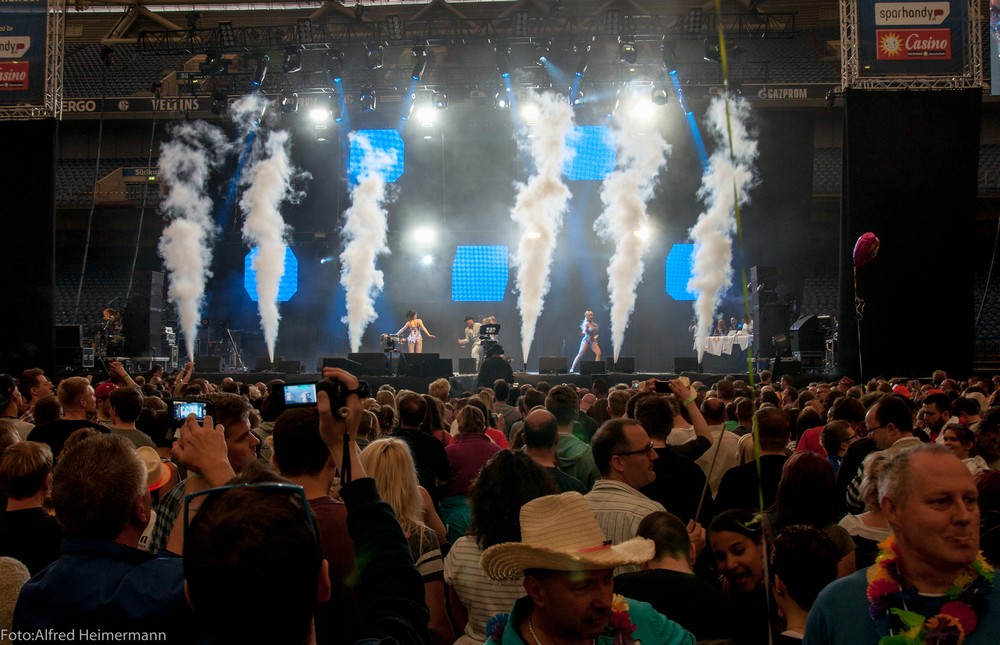 OleParty auf Schalke Velltins Arena Schalke Ca. 35000 überwiegend junge Schlager und Party Begeisterte Menschen feierten in der Veltins Arena auf Schalke in Gelsenkirchen eine Mega Party, die größte Party Deutschlands mit 16 Künstler und über 10 Stunden Party. Tolle Oraganisation vom Veranstalter Markus Krampe und seinem Team! Auch das Publikum feierte ausgelassen und friedlich. |