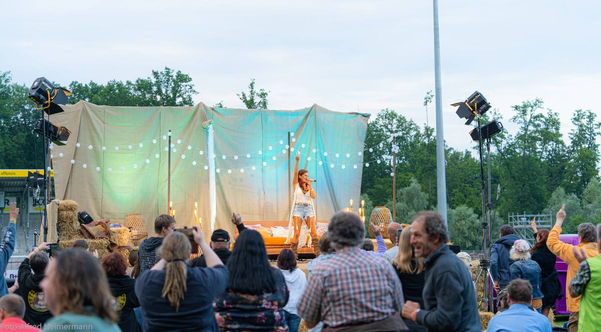 Openair Andrea Berg Aspach Das besondere Heimspiel, Konzert 9. Juli 2000 Besucher durften zum ersten von vier Openairkonzerten von Andrea Berg in die "Wir machen Druck Arena" und erlebten eine tolle Show . Andrea freute sich wie dolle wieder vor Publikum auf der Bühne zu stehen und forderte ihre Fans auf: steh auf und tanz. 90 Minuten durfte sie ihr Publikum mit ihren Liedern begeistern, ein Lichtblick in Pandemiezeiten. Die vier Konzerte sind ein Modellprojekt der Landesregierung von BW. |