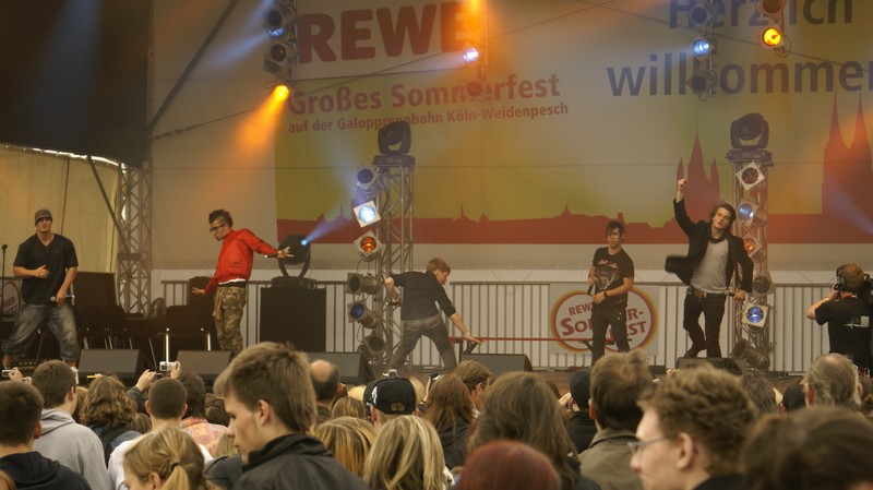 Rewe Sommerfest Köln Rewe Sommerfest Köln 80 000Menschen beim Rewe Sommerfest auf der Pferderennbahn in Köln am 16.5.2009. Auf der Bühne präsentierte Guido Cantz viele Künstler aus allen Musikrichtungen, so z.B. Fernando Express und Brings. |