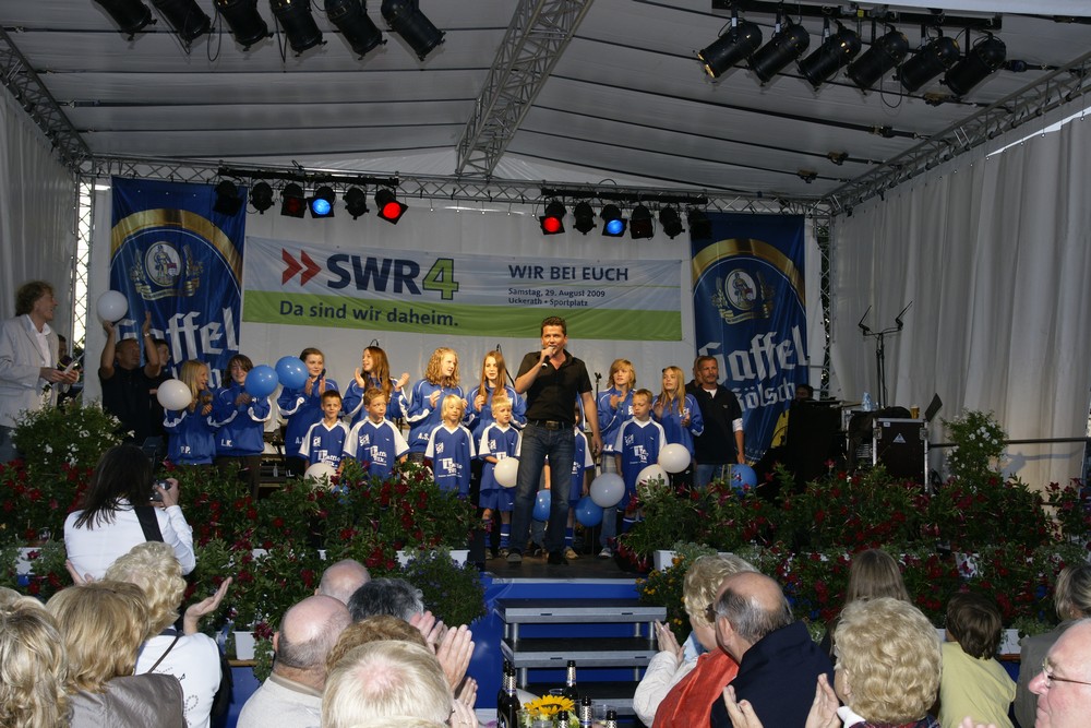 Schlagersommer Uckerath Schlagersommer Uckerath 29.8.2009 Über 1000 Schlagerfreunde waren ins Stadion des SC Uckertah gekommen, wo der SWR4 viele Stars präsentierte, wie Mary Roos, Michael Morgan, Tina York, Patrick Lindner, Joy Fleming und v.m. |