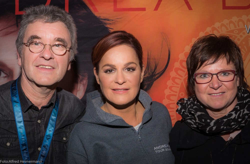 Seelenbeben Tour in Graz Stadthalle Graz 27.1.2017 Für das Konzert in Grazn wurden paar kleine Änderungen vorgenommen, da der größte Teil vom Publikum Sitzplätze hatte, hatte man paar Baladen mehr eingebaut. IM publikum auch ein Mitglit der Gruppe Opus, der einLied "Live is Live" Andrea ja auch im 2. Teil der Show singt. Nachdem Konzert ging es schnell mit den Fotowünschen über die Bühne, so dass Andrea pünktlich um 0:00 Uhr mit ihrer angere3isten Familie und dem Team ihren 51. Geburtstag feiern konnte. |