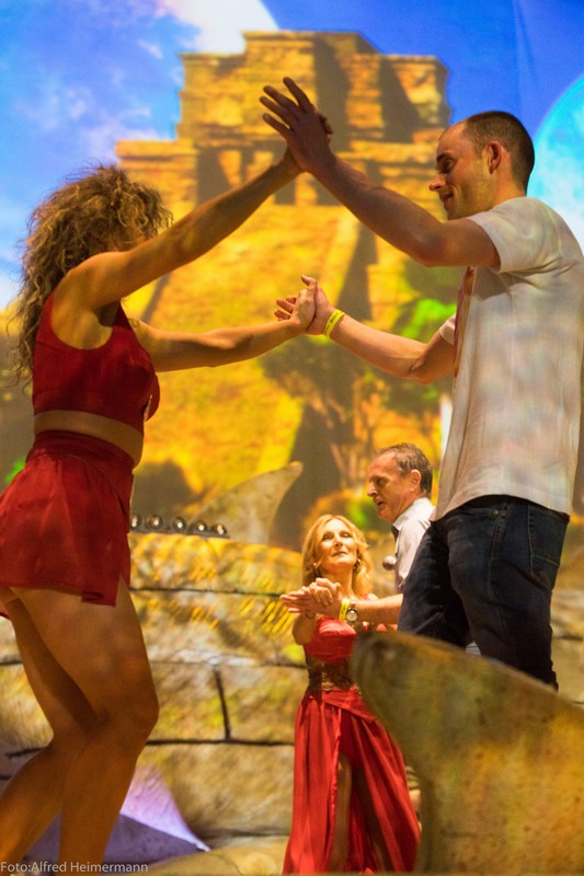 Seelenbeben mit Andrea Berg, Mannheim SAP-Arena Mannheim, 21.1.2017 10000 Besucher erlebten Andrea Berg bei ihrem Konzert in der Mannheimer SAP Arena und wurden bestens unterhalten. 2 junge Damen durften mit Andrea die Bühne betreten und ein Lioed mit ihr singen, man merkte ihnen die Freud an. Andrea fordete gegen Ende der Show zum Discofox auf und rief zur Damenwahl auf, was von ihren 3 Tänzerinnen und den beiden Backround Sängerinnen befolgt wurde, sie holten sich Männer aus dem Publikum und tanzten auf der Bühne, während Andrea sang. Ein neuer Gag der Show, der gut ankam. |